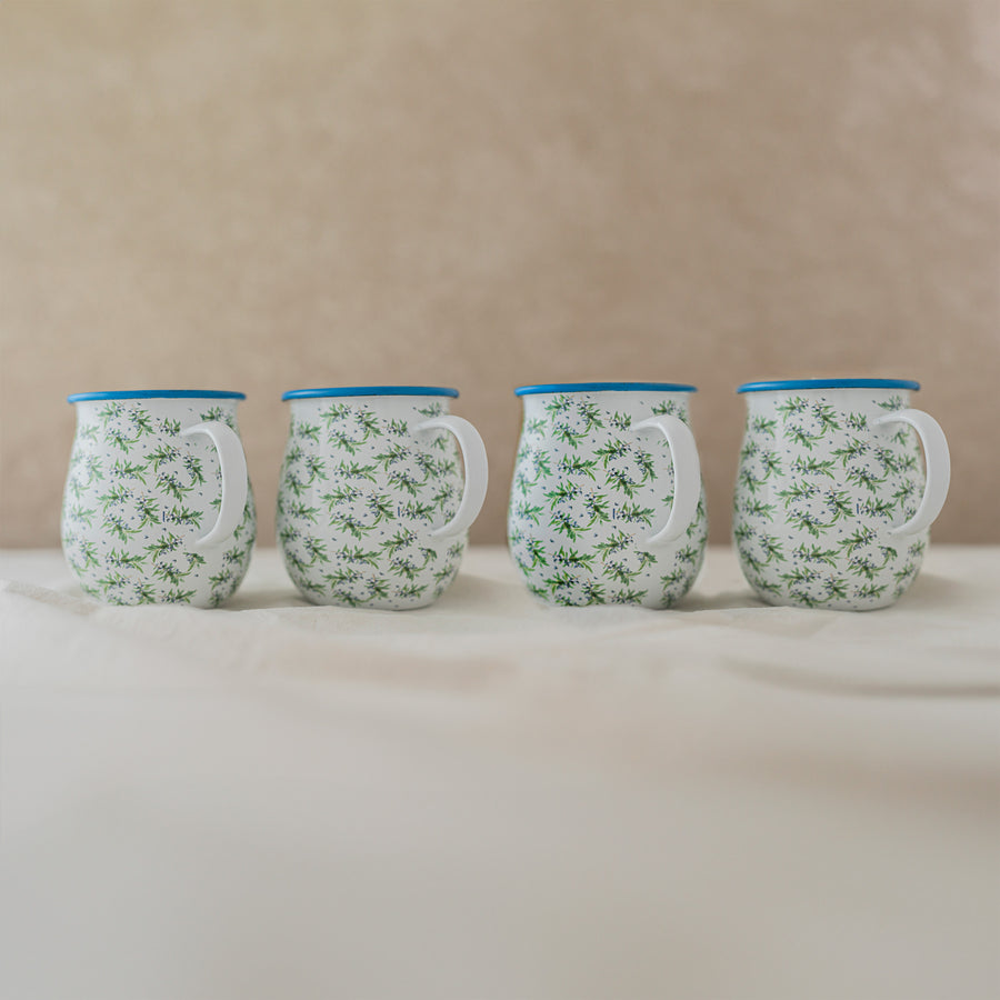 Add a rustic touch to your table with this beautiful enameled set featuring an elegant olive design. The combo includes four large mugs, perfect for enjoying coffee, tea, or any hot beverage in style. Made from durable enameled material, these mugs are both functional and timeless, ideal for everyday use or as a thoughtful gift for any occasion.